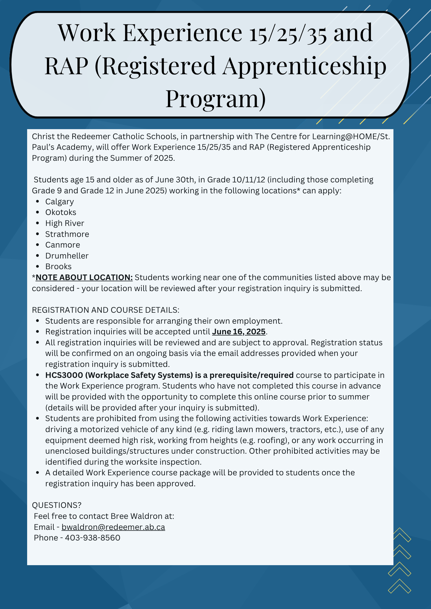| WORK EXPERIENCE & RAP (Registered Apprenticeship Program) | WEX 15/25/35 | RAP | ||