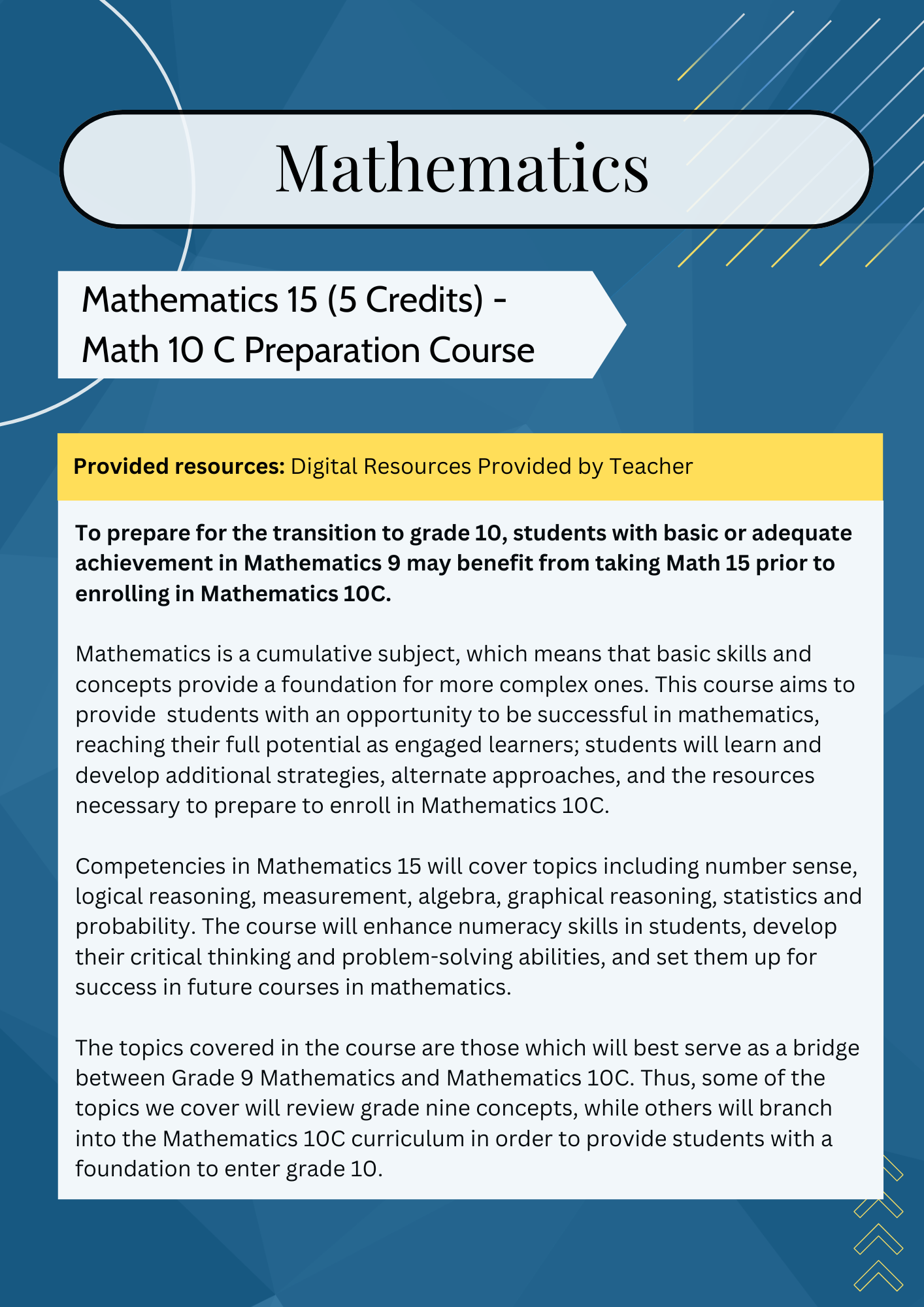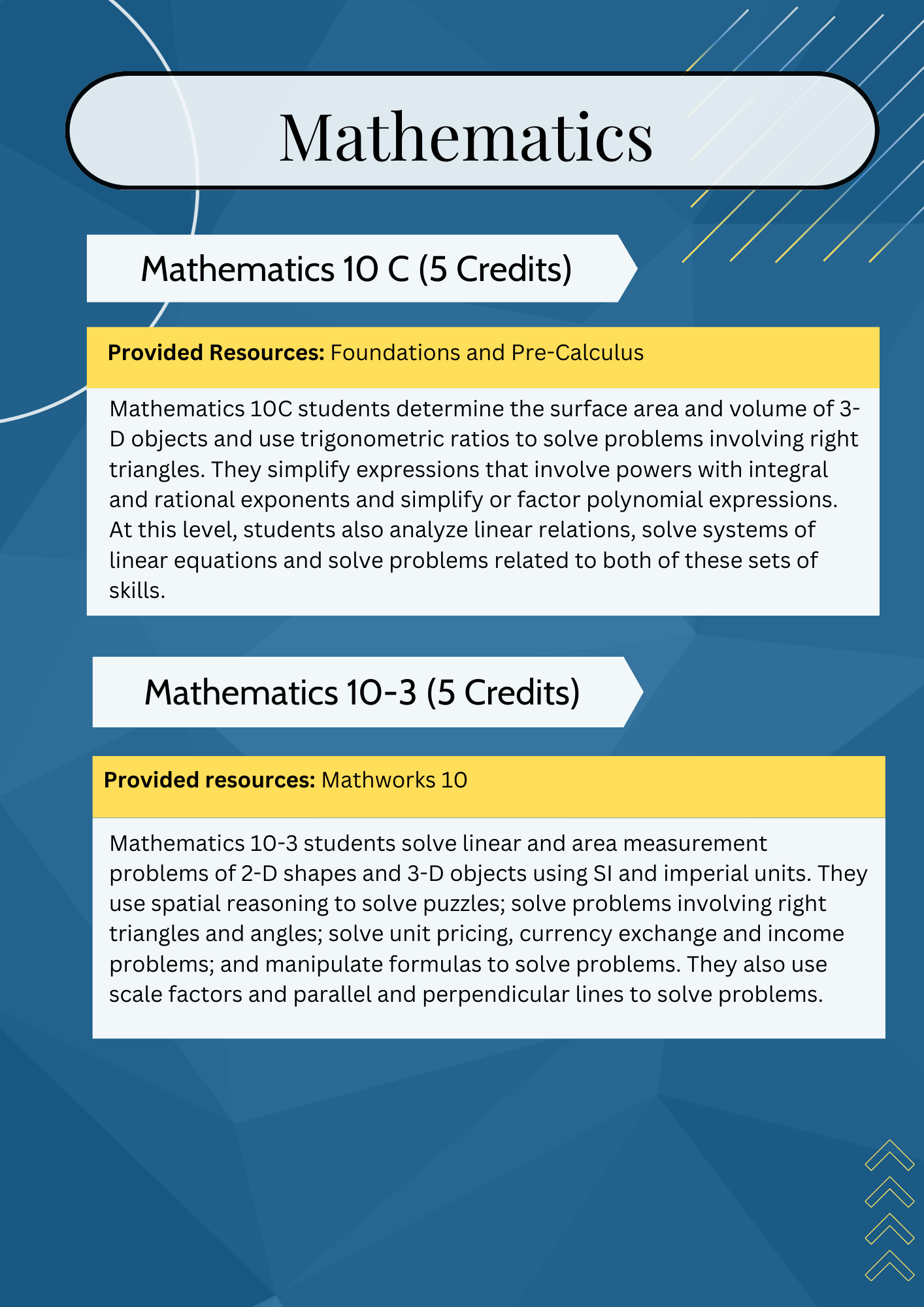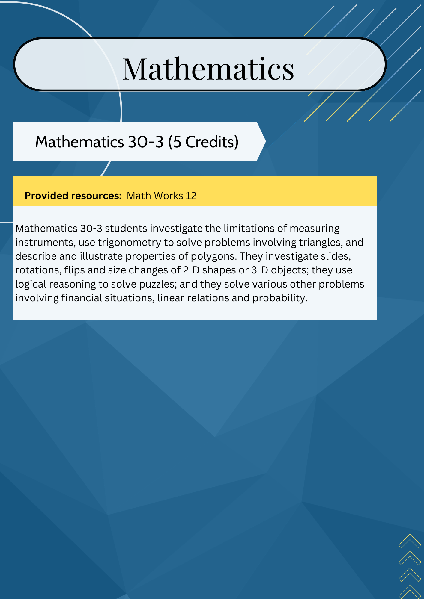 | Math 20-1 | Math 20-2 | Math 20-3 | Math 30-3 | |