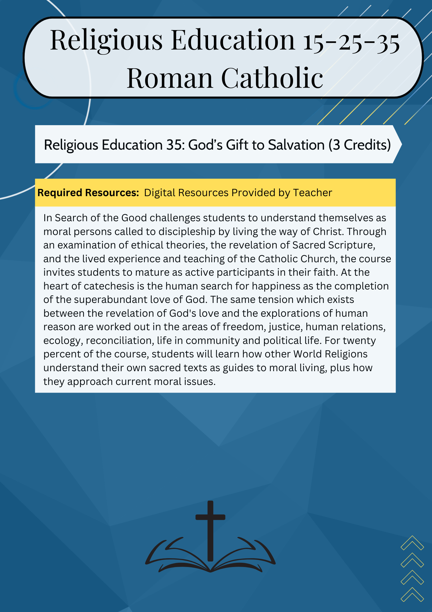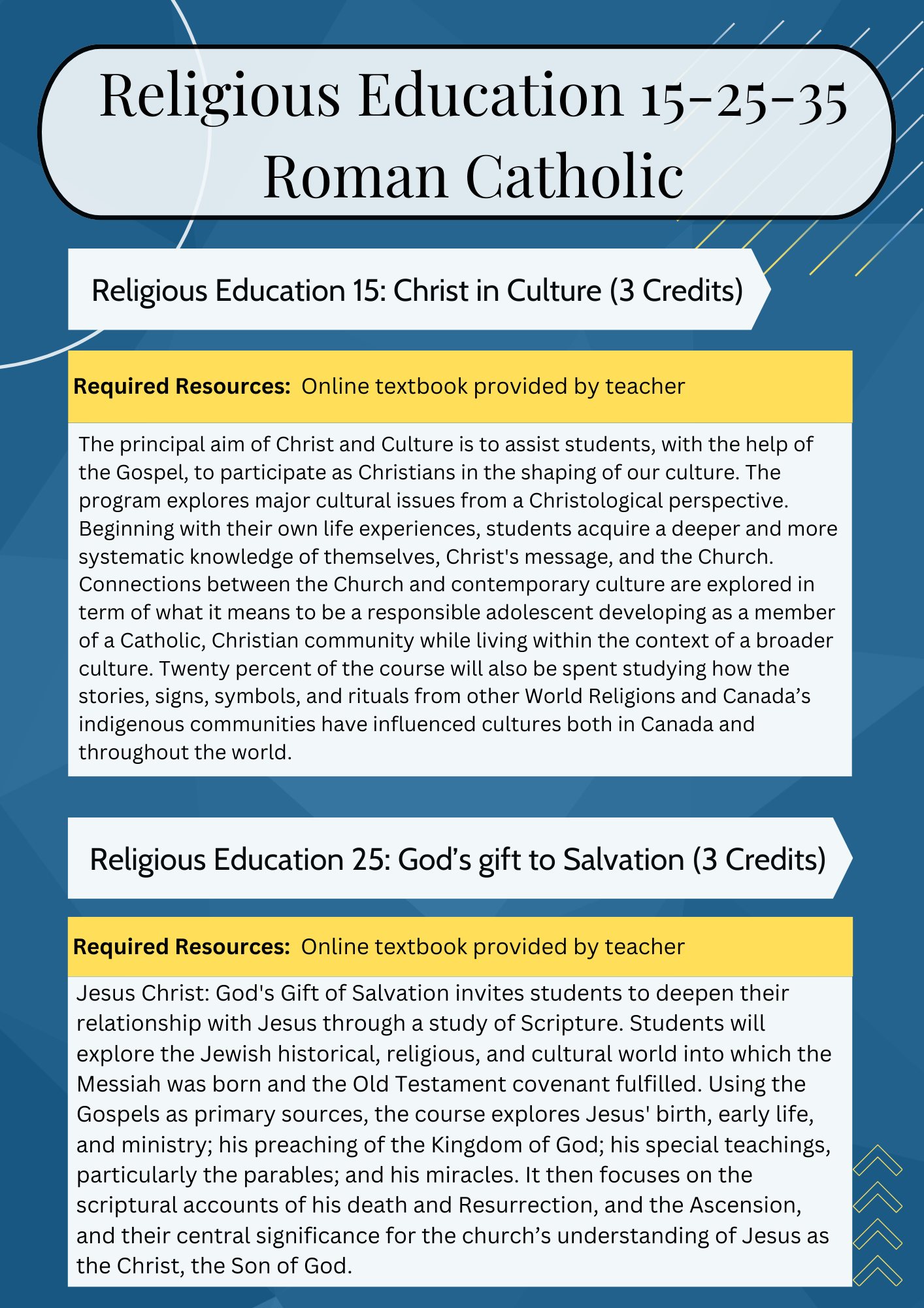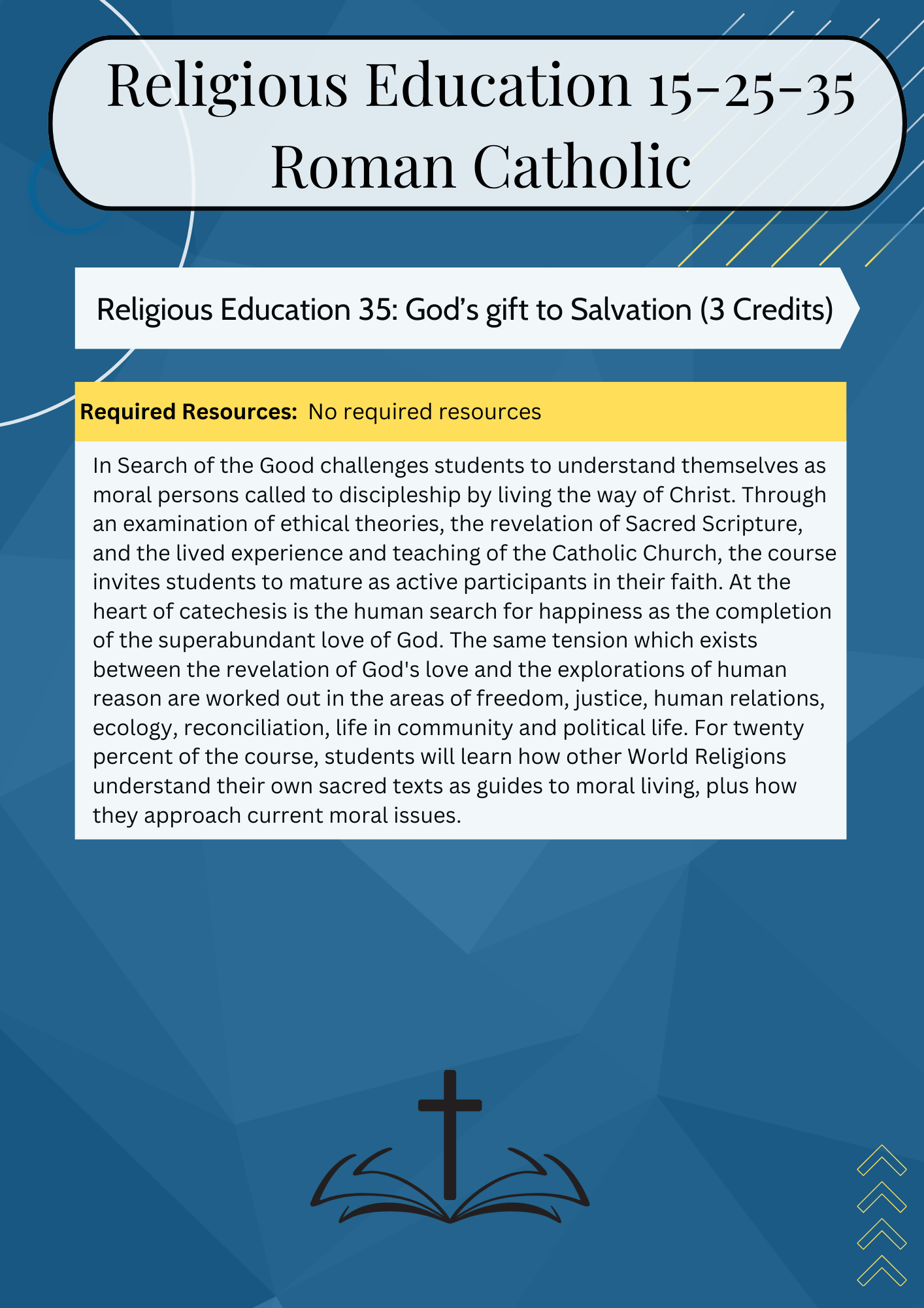| RELIGION – 3 credits | Religion 15 | Religion 25 | Religion 35 | |