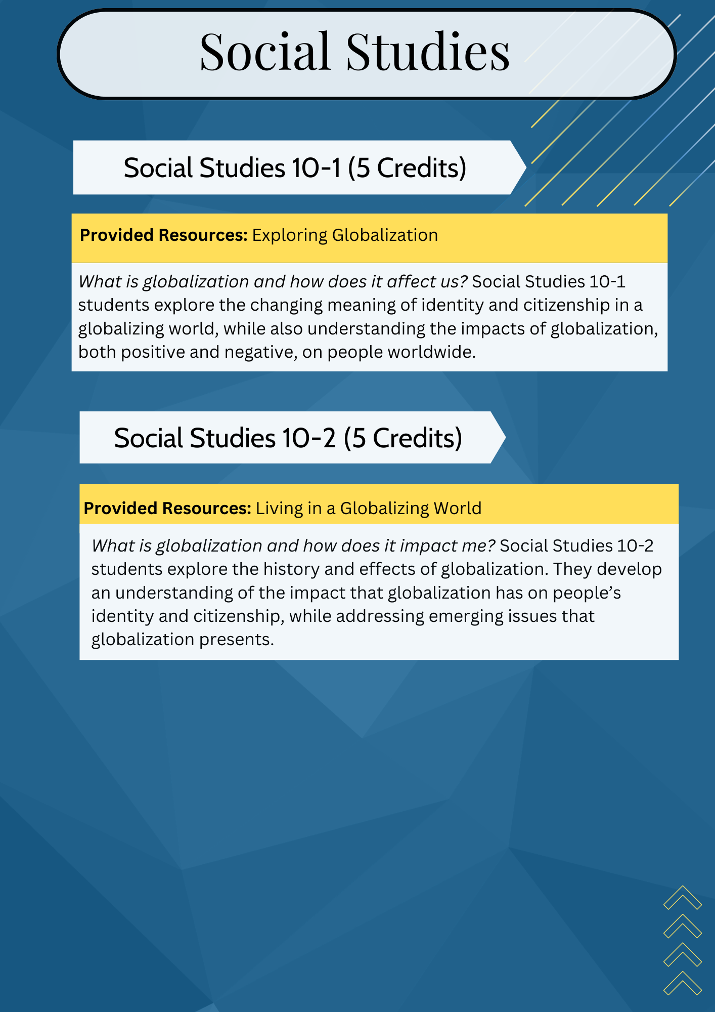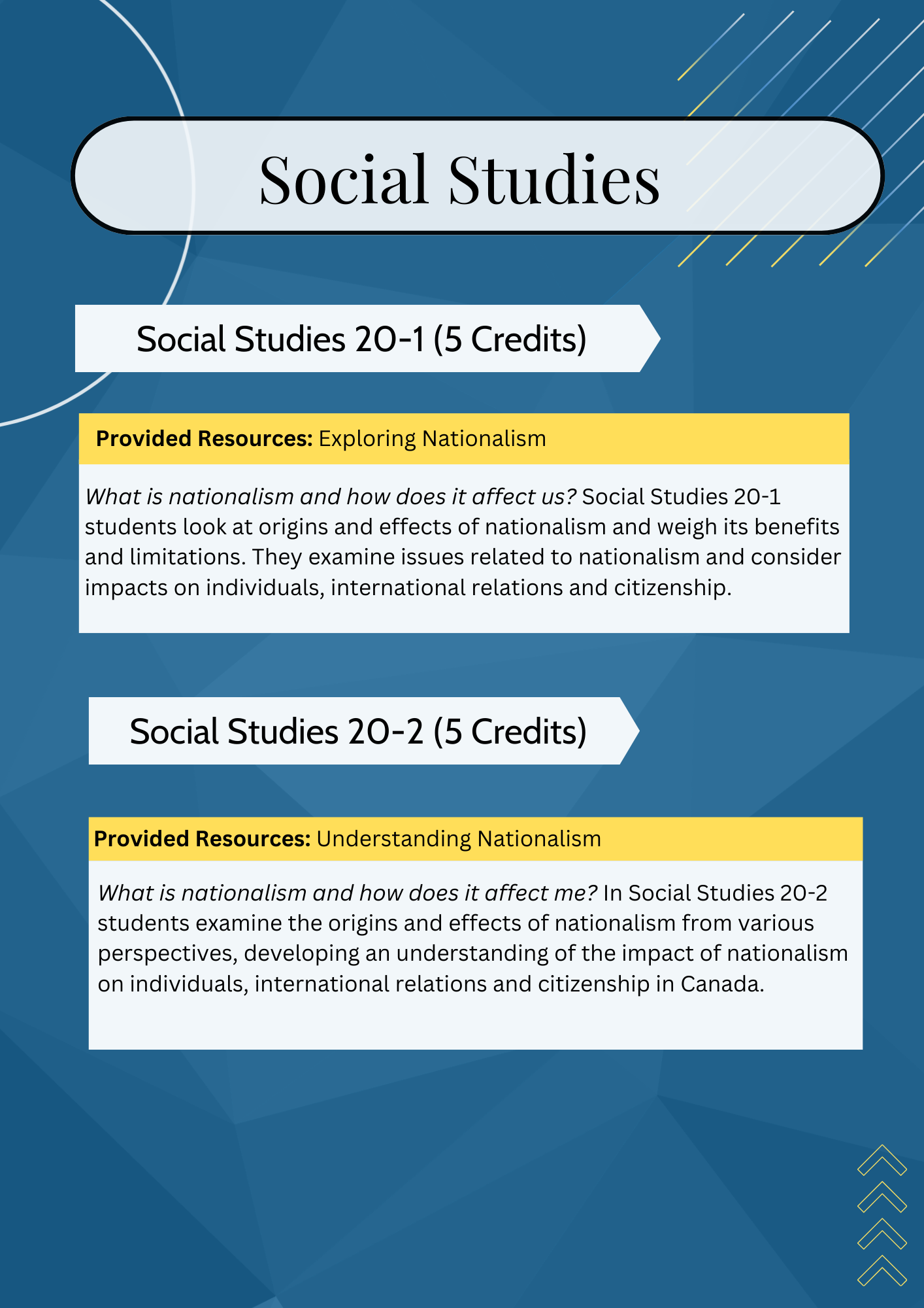 | SOCIAL STUDIES | Social 10-1 | Social 10-2 | Social 20-1 | Social 20-2 |