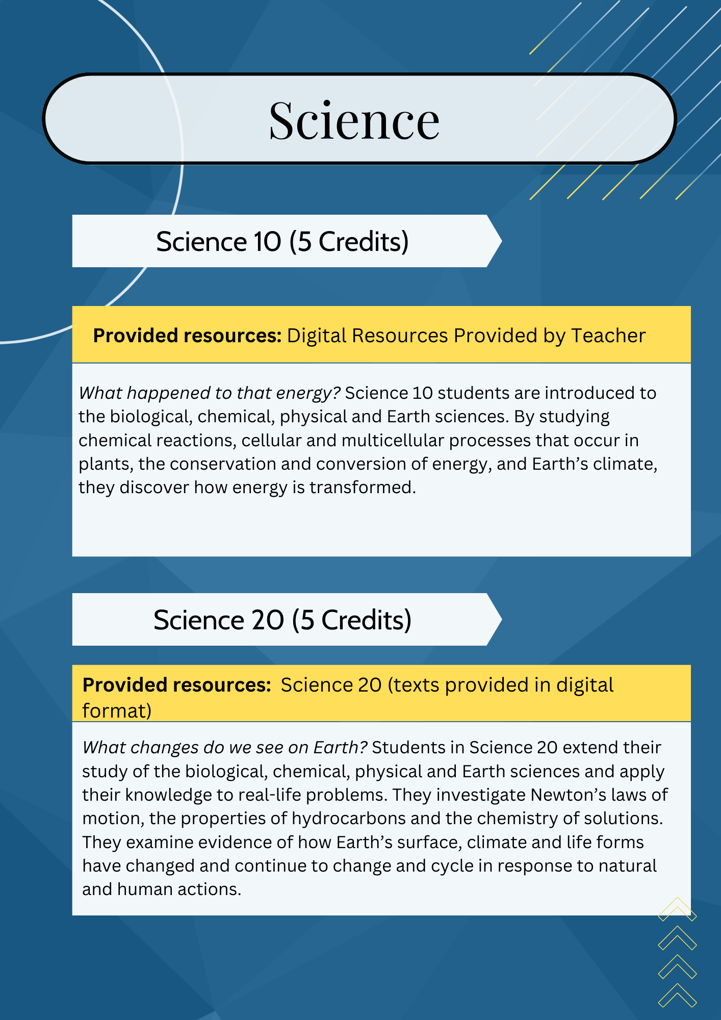 | SCIENCES | Science 10 | Science 20 | ||