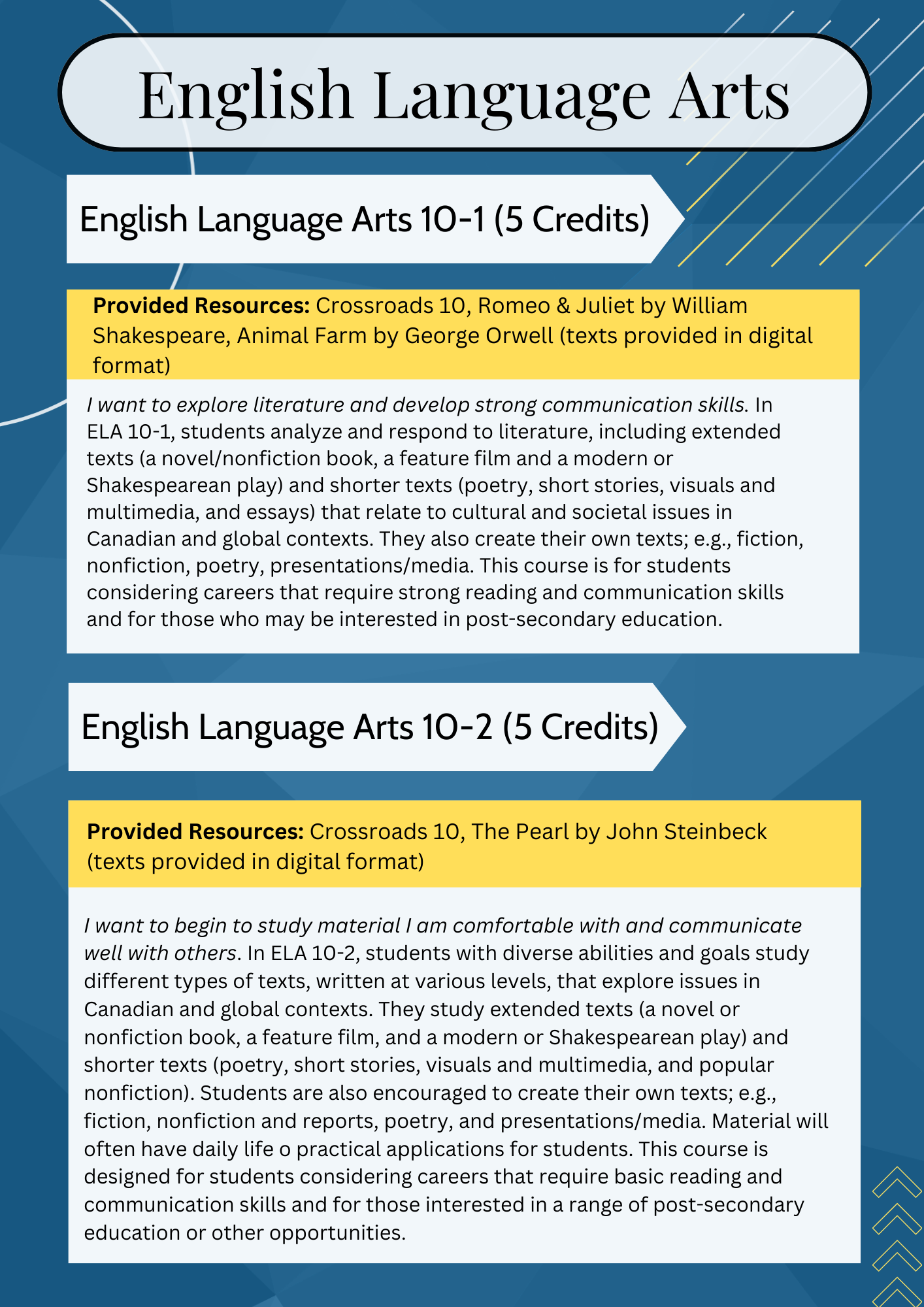 | ENGLISH | Eng 10-1 | Eng 10-2 | Eng 20-1 | Eng 20-2 |